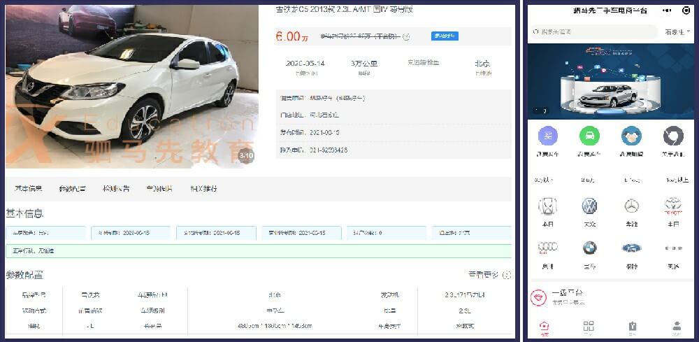 二手車電商平臺作為汽車后市場企業(yè)真實在運營的平臺,可通過模擬實訓導入專業(yè)教學,也可導入真實業(yè)務進行校園雙創(chuàng)。平臺線上整合車輛資源,